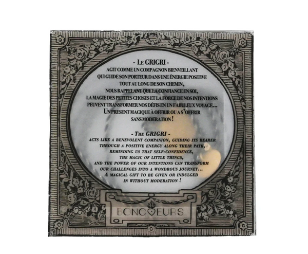 On aime le côté talisman bienveillant de ce grigri. Il arrive dans une pochette qui raconte son histoire. Une jolie attention prêt à (s’) offrir.