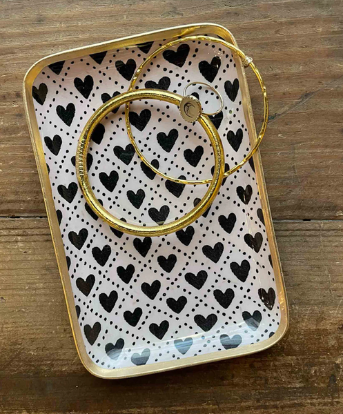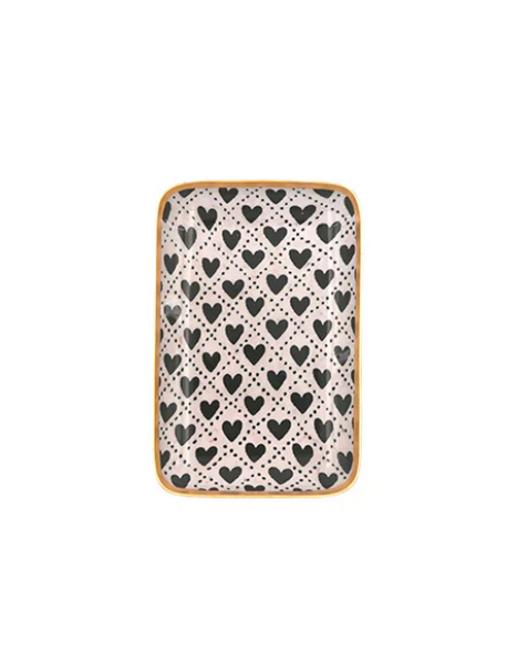 Petit plateau rectangulaire "Les coeurs" en aluminium émaillé, 15,3 x 10 cm