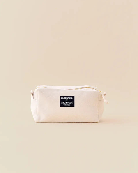 Pensée pour accompagner les grands départs comme les petits trajets, cette trousse de toilette en coton robuste accueille produits de soin, accessoires ou trésors en vrac avec élégance.